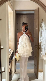 This collection was designed with the modern vacationer in mind—someone en route to Tulum, Mykonos, or Malibu with a suitcase filled with vibrant, flirty, and elevated pieces. From breezy beach-to-bar dresses to statement maxis and sheer cover-ups, every piece is crafted to move effortlessly from sun-drenched days to golden hour dinners. As someone lucky enough to be part of this jet-set crowd this year, I’m curating this collection through a personal lens—selecting the pieces I’m looking forward to packing, myself.