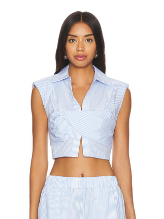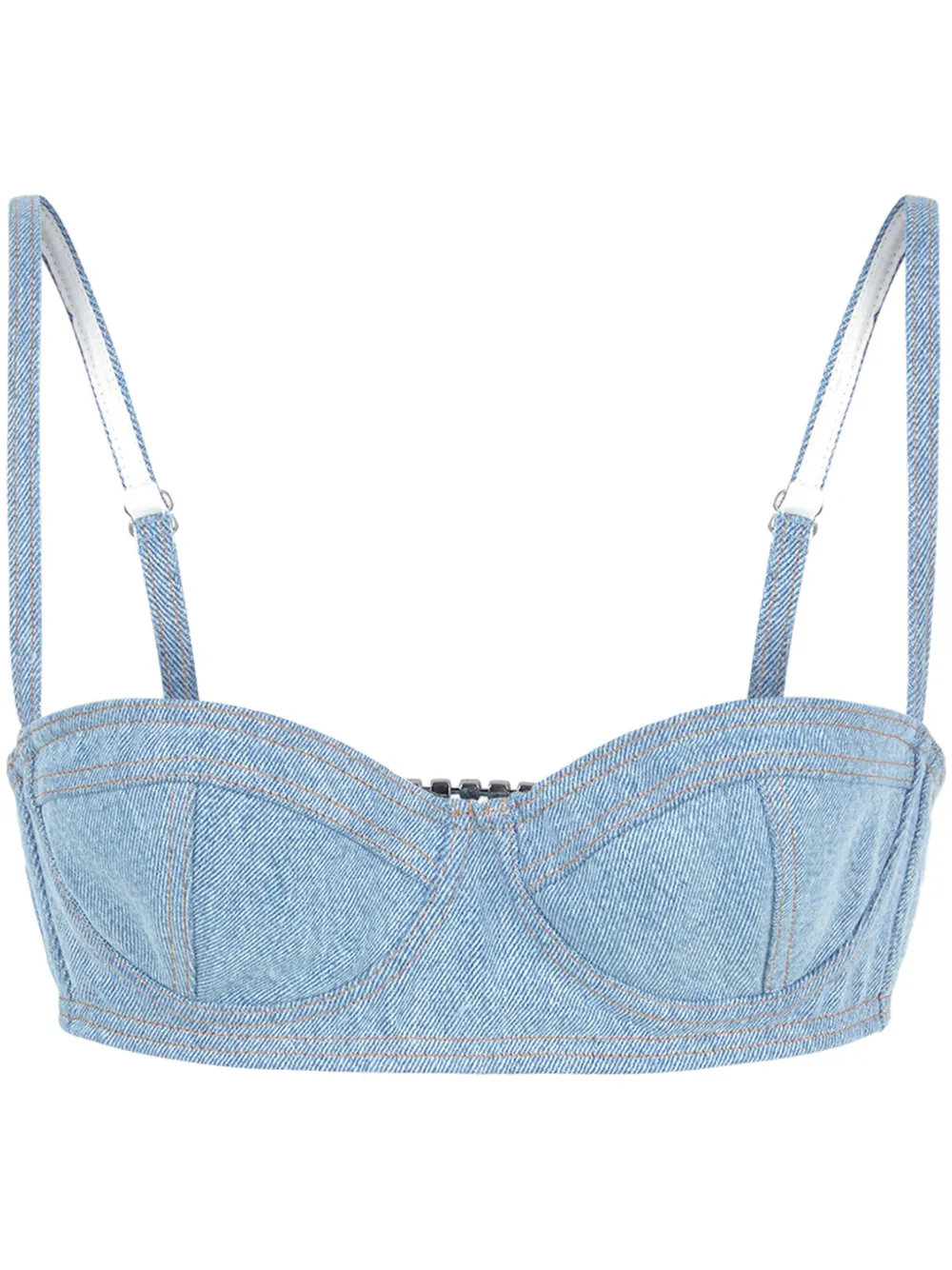 The Jolie Skirt Ada Jacket Logo-Embellished Denim Bustier